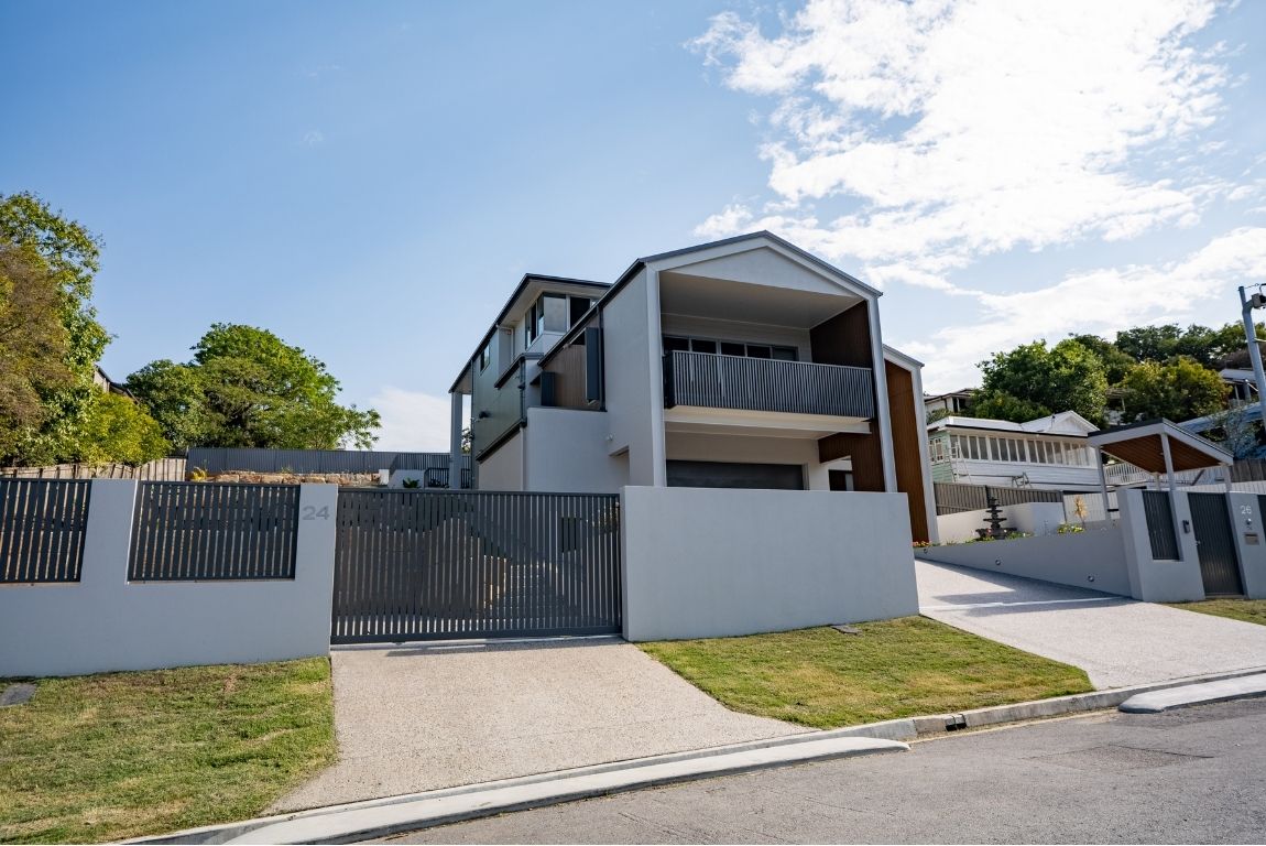 This newly completed residence in Taringa demonstrates contemporary design with functional form. Built over three storeys, the home features clean architectural lines, a spacious layout, and integrated solar solutions for long-term efficiency. Positioned on a residential block, the project balances privacy with street appeal, making use of tiered landscaping and refined material selections. It’s a standout example of modern suburban living, finished to the highest standard.